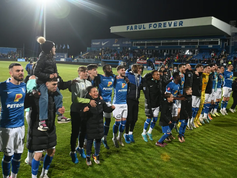 Fotbalistii constanteni saluta galeria dupa meciul de fotbal dintre Farul Constanta si CFR Cluj, contand pentru Play-off-ul Superligii Superbet, desfasurat pe Stadionul central al Academiei Gheorghe Hagi din Ovidiu, sambata 22 aprilie 2023. © FOTO:Razvan Pasarica/SPORT PICTURES