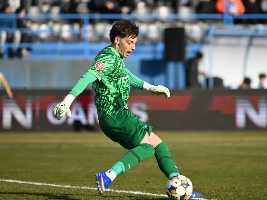 Rafael Stefan Munteanu degajeaza un balon in meciul de fotbal dintre Farul Constanta si Petrolul Ploiesti, contand pentru play out-ul Superligii Superbet, desfasurat pe Stadionul central al Academiei Gheorghe Hagi din Ovidiu, duminica 15 martie 2026. © FOTO:Razvan Pasarica/SPORT PICTURES
