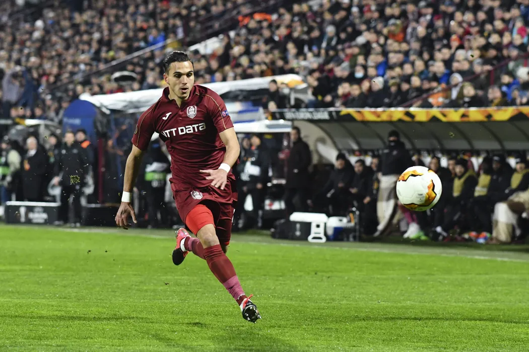 Cristian Manea, de la CFR Cluj, suteaza in timpul meciului de fotbal contra echipei Sevilla, din 16-imile Europa League, mansa tur, disputat pe stadionul Dr. Constantin Radulescu din Cluj-Napoca, joi, 20 februarie 2020. FLAVIU BUBOI / MEDIAFAX FOTO