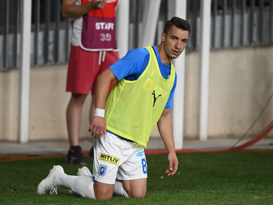 Alexandru Mateiu la incalzire in meciul de fotbal dintre Dinamo Bucuresti si Universitatea Craiova, din cadrul Superligii Superbet, desfasurat pe Stadionul National Arcul de Triumf din Bucuresti, luni 17 iulie 2023. © FOTO:Razvan Pasarica/SPORT PICTURES