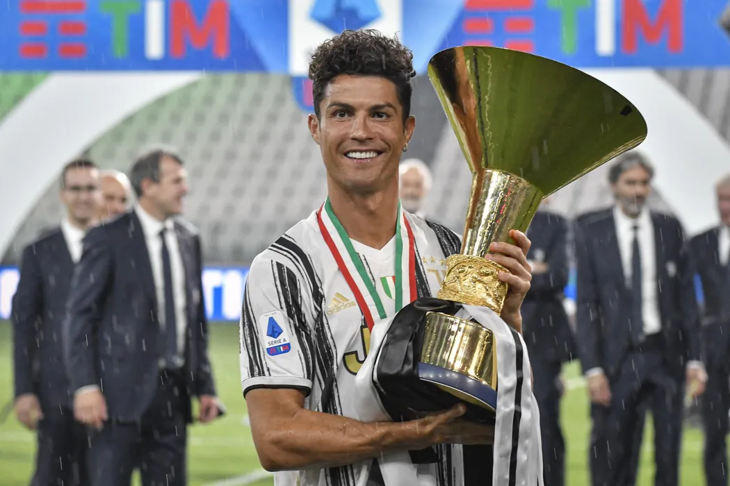 Cristiano Ronaldo of Juventus celebrates with the trophy