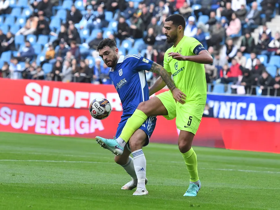 Aurelian Ionuț Chițu și Rachid Ahmed Bouhenna în meciul de fotbal dintre FCU 1948 Craiova și Poli Iași, contând pentru Superliga Superbet, desfășurat pe Stadionul Ion Oblemenco din Craiova, marți 27 februarie 2024. © FOTO: Remus BADEA/SPORT PICTURES