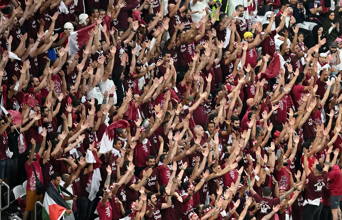 20 November 2022, Qatar, Al Khor: Qatari fans cheer in the stands prior to the start of the FIFA World Cup Qatar 2022 Group A opening match between Qatar and Ecuador at Al Bayt Stadium. Photo:/dpa