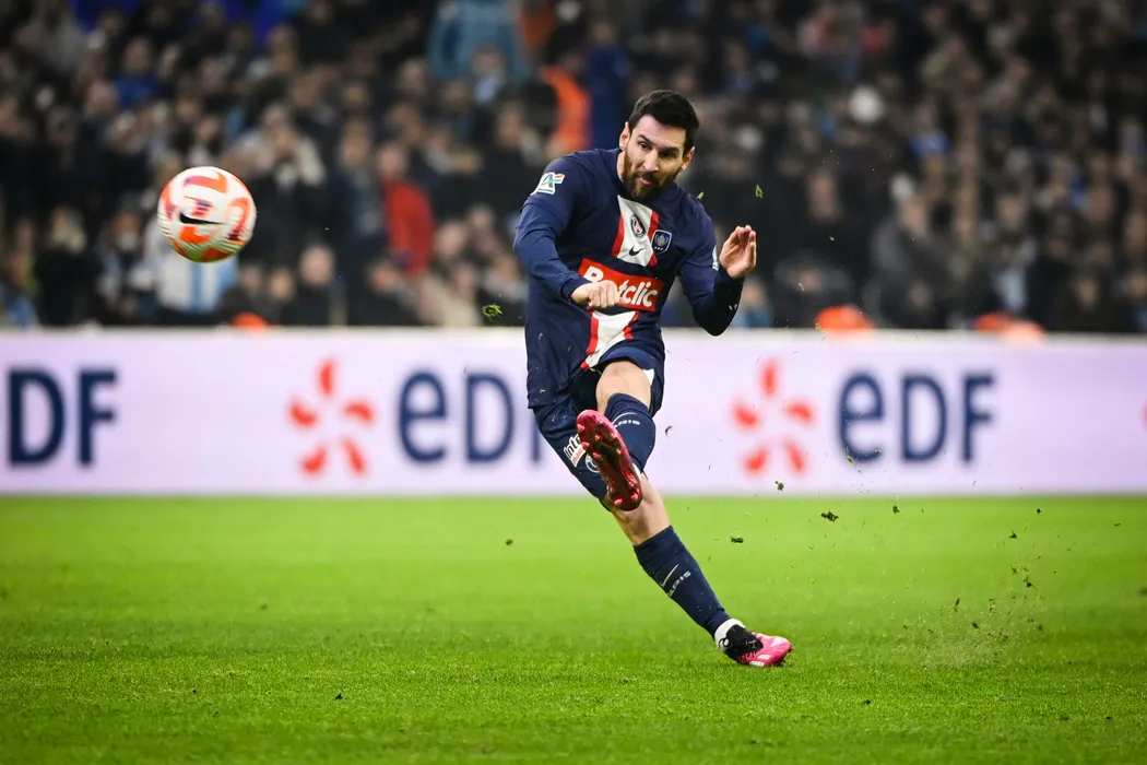 230209 -- MARSEILLE, Feb. 9, 2023 -- Paris Saint-Germain s Lionel Messi kicks the ball during the French Cup round of 16 football match between Olympique de Marseille OM and Paris Saint-Germain PSG at the Velodrome stadium in Marseille, Feb. 8, 2023. Photo by Clement Mahoudeau/Xinhua SPFRANCE-MARSEILLE-FOOTBALL-FRENCH CUP-PSG VS OM CxLEMENTMAHOUDEAUgaojing PUBLICATIONxNOTxINxCHN