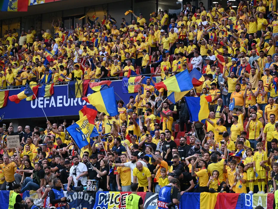 Suporterii romani isi incurajeaza favoritii la meciul de fotbal dintre Belgia si Romania, contand pentru UEFA EURO 2024, desfasurat pe Stadionul Cologne din Koln, sambata 22 iunie 2024. © FOTO:Razvan Pasarica/SPORT PICTURES