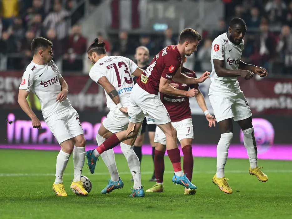 Mihai Catalin Bordeianu, Karlo Muhar, Mattias Kait si Christopher Braun in meciul de fotbal dintre Rapid Bucuresti si CFR Cluj, contand pentru Superliga Superbet, desfasurat pe Stadionul Rapid Giulesti din Bucuresti, duminica 30 octombrie 2022. © FOTO:Razvan Pasarica/SPORT PICTURES