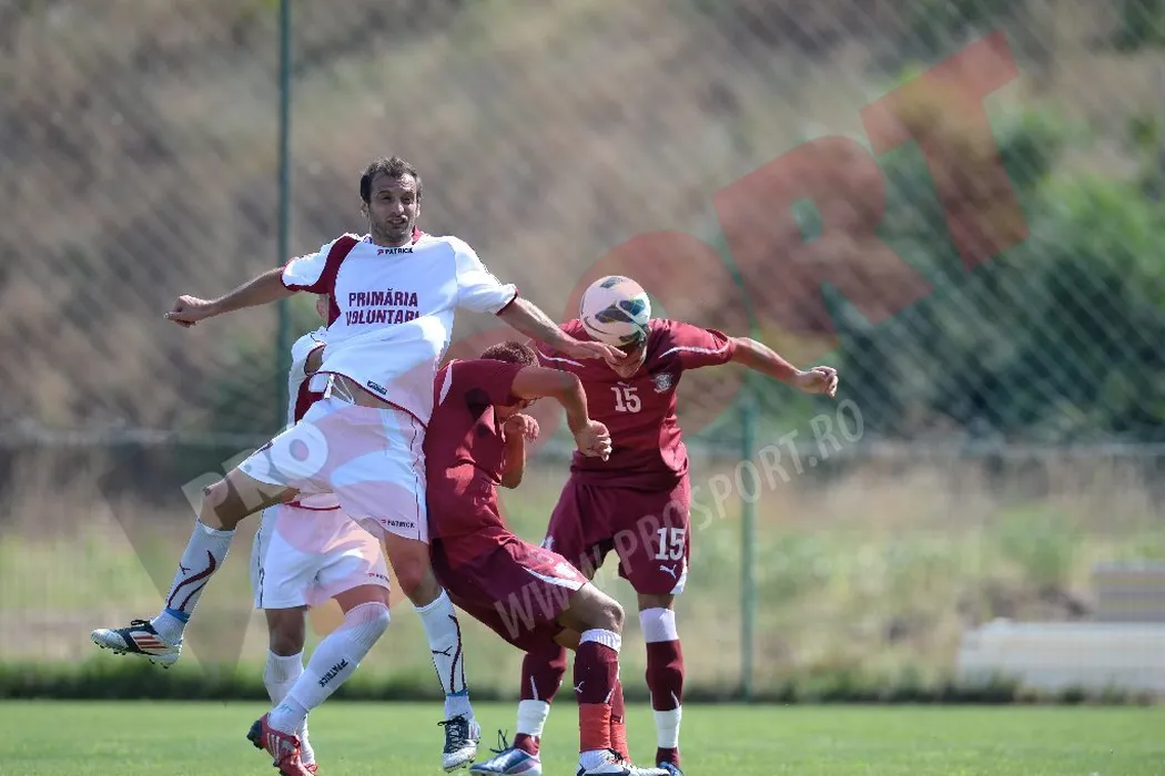 Aproximativ 500 de suporteri au încurajat Rapidul în amicalul cu FC Voluntari! Ce bannere au afișat fanii. FOTO