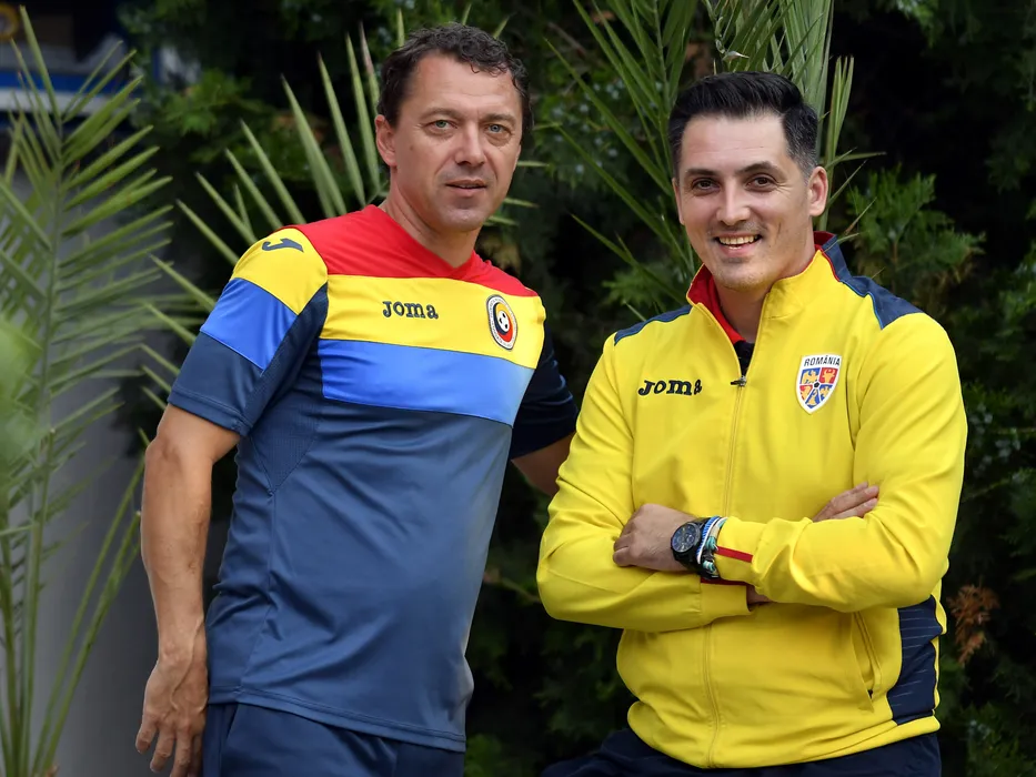 Laurentiu Rosu si Razvan Rotaru discuta dupa meciul amical de fotbal dintre Romania U18 si Georgia U18, desfasurat la Centrul National de fotbal de la Mogosoaia, vineri 7 iunie 2019. © FOTO:Razvan Pasarica/SPORT PICTURES