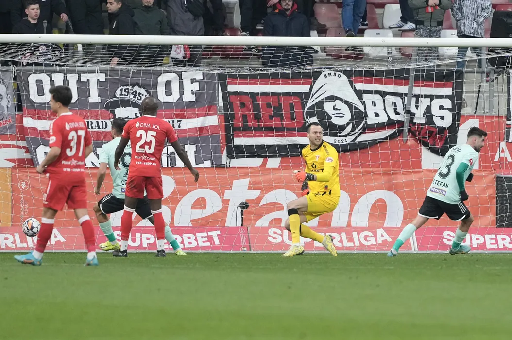 Florin Bogdan Stefan inscrie in poarta aparata de Deyan Iliev in meciul de fotbal dintre UTA Arad si Sepsi OSK Sfantu Gheorghe, contand pentru Superliga Superbet, desfasurat pe Arena Francisc Neuman din Arad, luni 24 februarie 2025. © FOTO: Alexandra Fechete/SPORT PICTURES