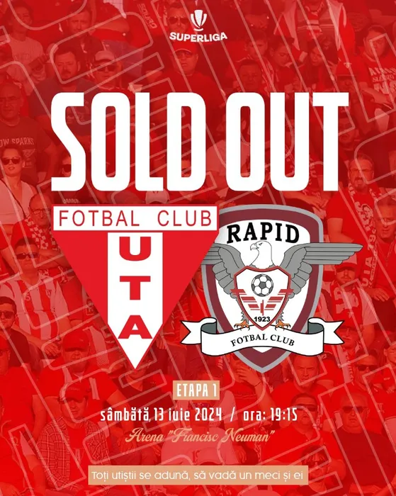 Aradul fierbe la propriu și la figurat: UTA – Rapid se dispută cu casa închisă, la aproape 40 de grade Celsius!