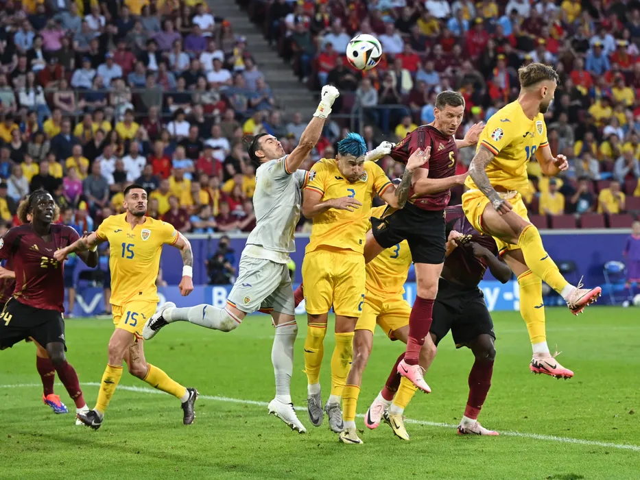 Amadou Onana, Andrei Burca, Florin Niță, Andrei Rațiu, Jan Vertonghen si Denis Drăguş in meciul de fotbal dintre Belgia si Romania, contand pentru UEFA EURO 2024, desfasurat pe Stadionul Cologne din Koln, sambata 22 iunie 2024. © FOTO:Razvan Pasarica/SPORT PICTURES