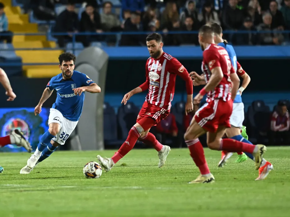 Narek Grigoryan si Isnik Alimi in meciul de fotbal dintre Farul Constanta si Sepsi OSK Sfantu Gheorghe, contand pentru Play off-ul Superligii Superbet, desfasurat pe Stadionul central al Academiei Gheorghe Hagi din Ovidiu, vineri 3 mai 2024. © FOTO:Razvan Pasarica/SPORT PICTURES