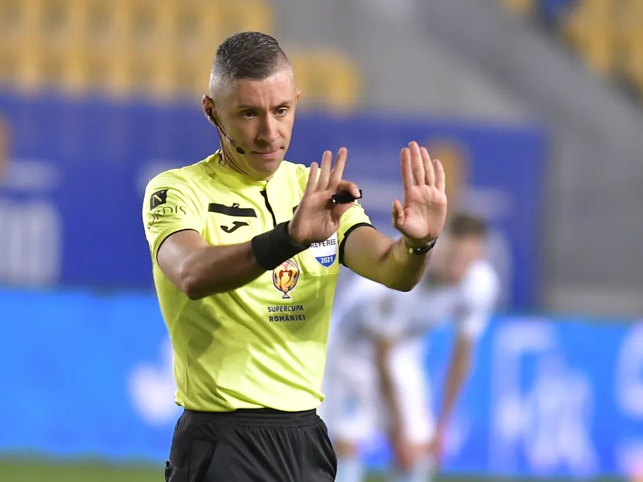 Arbitrul central Radu Petrescu in meciul de fotbal dintre CFR Cluj si FCSB, Supercupa Romaniei, desfasurat fara spectatori pe Stadionul Ilie Oana din Ploiesti, joi 15 aprilie 2021. © FOTO:Razvan Pasarica/SPORT PICTURES