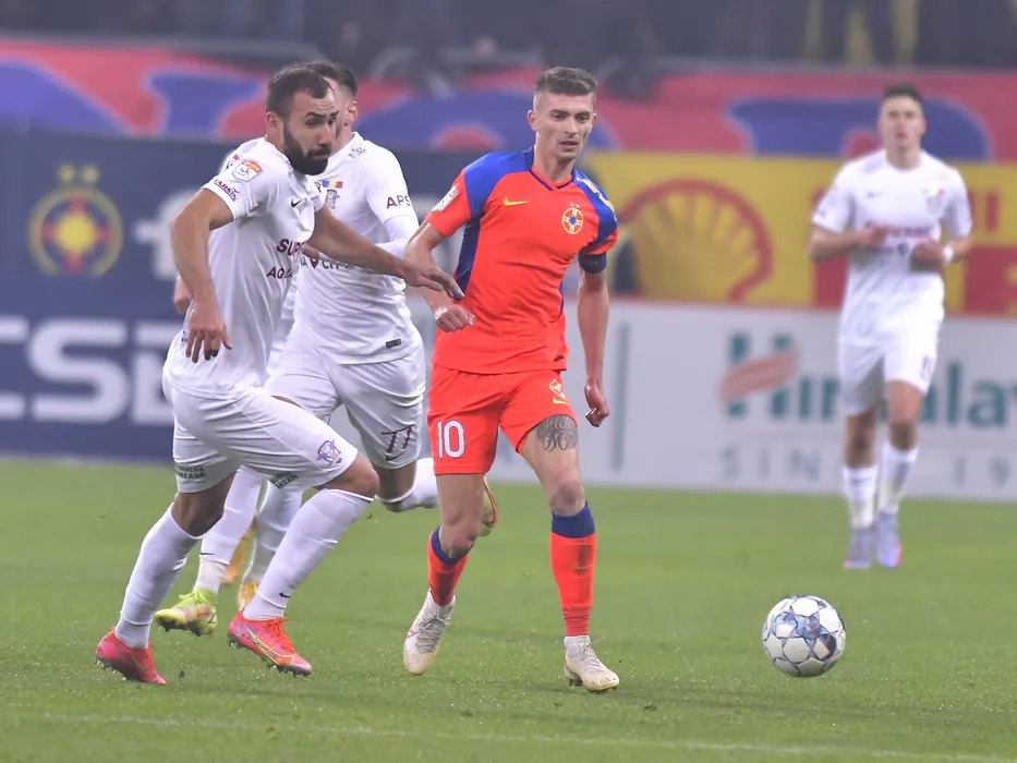 Alexandru Adrian Dandea si Florin Lucian Tanase in meciul de fotbal dintre FCSB si Rapid Bucuresti, contand pentru Liga 1 Casa Pariurilor, desfasurat pe Arena Nationala din Bucuresti, miercuri 15 decembrie 2021. © FOTO:Razvan Pasarica/SPORT PICTURES