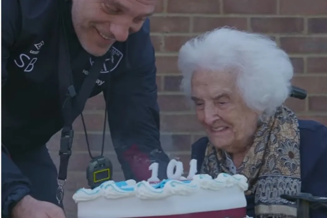 Are 101 ani și este cel mai fidel suporter al formației West Ham. O bătrână i-a cucerit pe englezi. A petrecut de ziua ei cu toată echipa