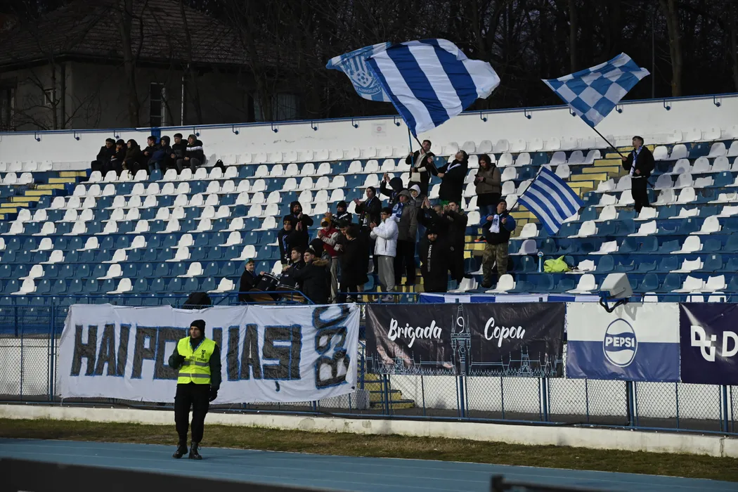 Galeria ieseana cu steaguri si fulare isi incurajeaza favoritii in meciul de fotbal dintre Poli Iasi si UTA Arad, contand pentru SuperLiga Superbet, desfasurat pe Stadionul Emil Alexandrescu din Iasi, joi 6 februarie 2025. © FOTO: Tudi/SPORT PICTURES