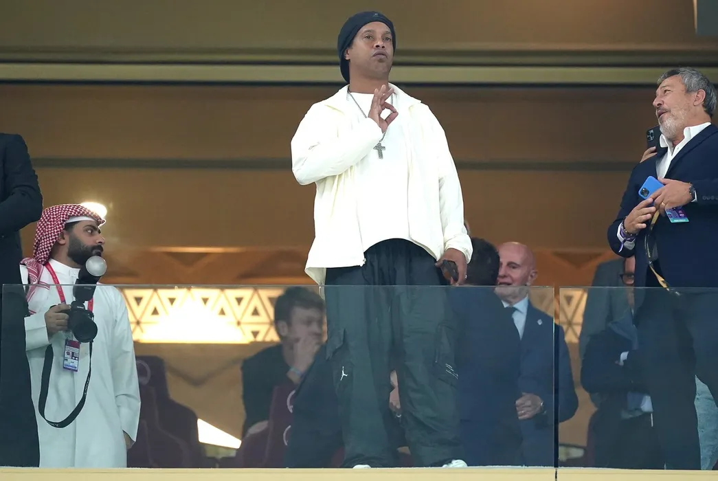 Former Brazil player Ronaldinho in the stands before the FIFA World Cup Semi-Final match at the Lusail Stadium in Lusail, Qatar. Picture date: Tuesday December 13, 2022.,Image: 744402481, License: Rights-managed, Restrictions: Use subject to restrictions. Editorial use only, no commercial use without prior consent from rights holder., Model Release: no