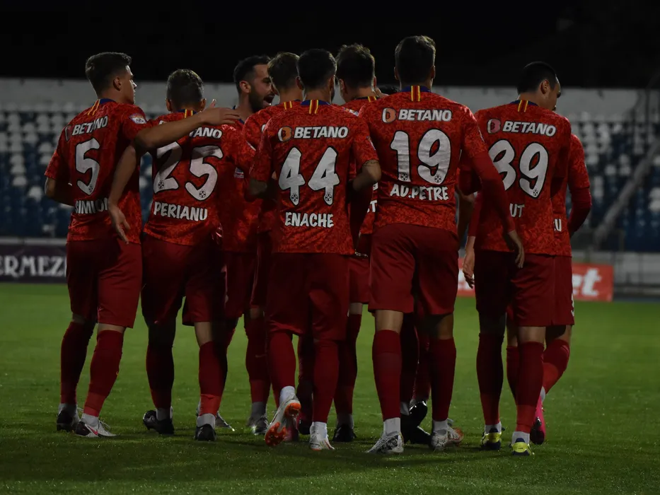 Bucurie a fotbalistilor stelisti cu Gabriel Bogdan Simion si Aristeidis Soiledis in meciul de fotbal dintre ACSM Politehnica Iasi si FCSB, contand pentru Liga 1 Casa Pariurilor, desfasurat fara spectatori pe Stadionul Emil Alexandrescu din Iasi, duminica 27 septembrie 2020. © FOTO:Dragos Pascaneanu/SPORT PICTURES