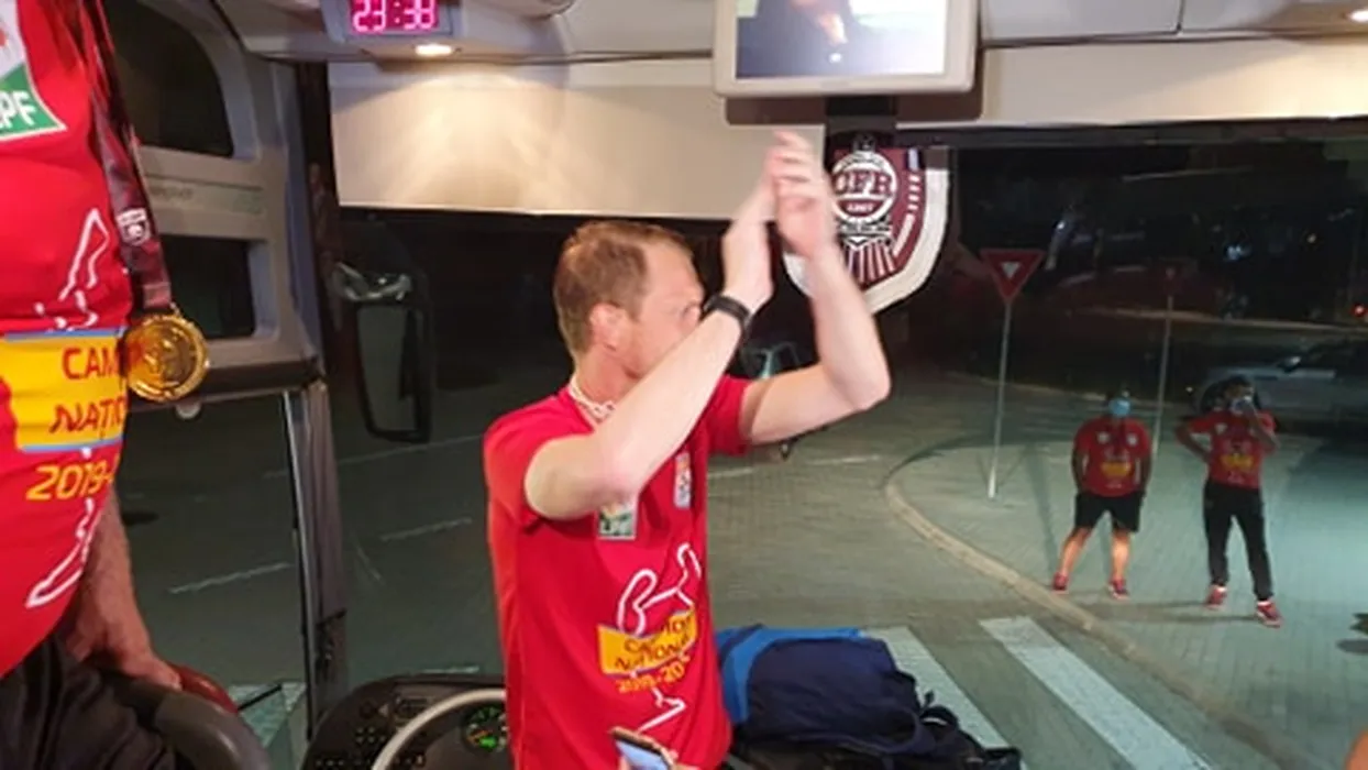 Arlaukis și-a luat deja viteză de la Cluj! A „furat” autocarul și a dat drumul petrecerii: „Merg spre al 6-lea titlu!” Imagini fabuloase cu portarul CFR-ului | VIDEO