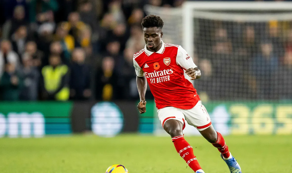 Wolverhampton Wanderers v Arsenal Premier League 12/11/2022. Arsenal midfielder Bukayo Saka 7 during the Premier League match between Wolverhampton Wanderers and Arsenal at Molineux, Wolverhampton, England on 12 November 2022. Wolverhampton Molineux West Midlands England Editorial use only DataCo restrictions apply See www.football-dataco.com PUBLICATIONxNOTxINxUK , Copyright: xManjitxNarotrax PSI-16379-0134