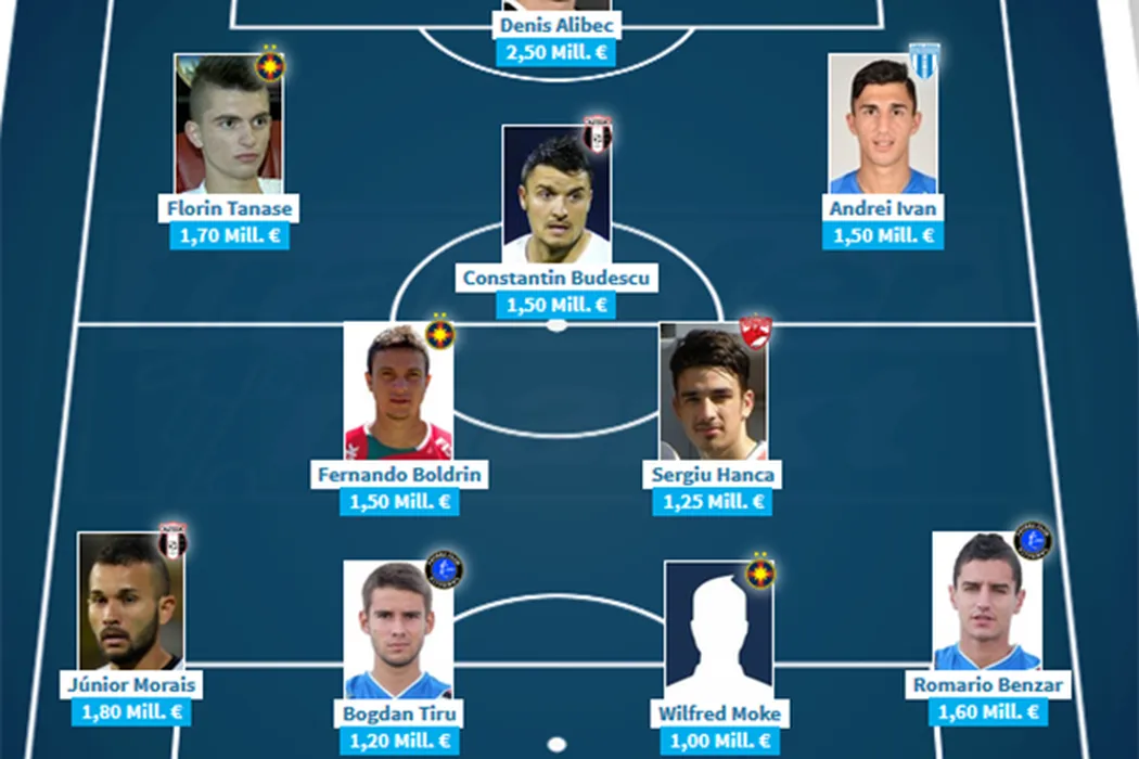 Așa arată cel mai valoros 11 din Liga 1! FCSB dă 4 jucători, Astra 3. Viitorul, Dinamo și Craiova, reprezentate și ele. Cum arată echipa de 17,8 milioane de euro