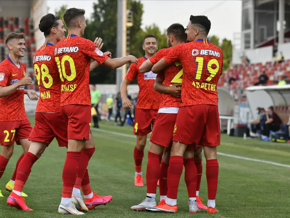 Bucurie stelista cu Dennis Man si Adrian Petre in meciul de fotbal dintre Astra Giurgiu si FCSB, contand pentru play-off-ul Ligii 1 Casa Pariurilor, disputat fara spectatori pe Stadionul Marin Anastasovici din Giurgiu, luni 29 iunie 2020. © FOTO:Razvan Pasarica/SPORT PICTURES