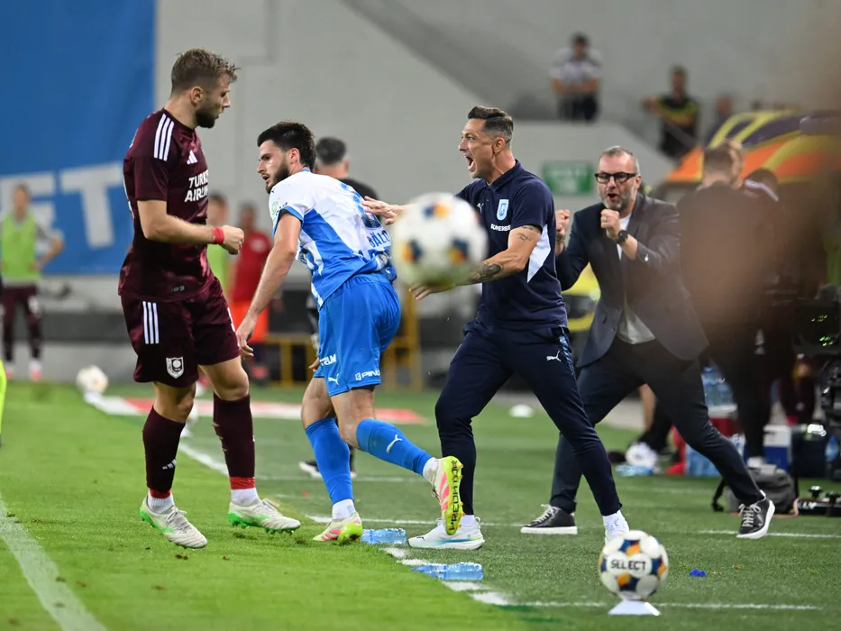 Matei Mirel Radoi reactioneaza alaturi de Tudor Cristian Baluta in meciul de fotbal dintre Universitatea Craiova si FK Sarajevo, contand pentru Preliminariile Conference League, desfasurat pe Stadionul Ion Oblemenco din Craiova, joi 31 iulie 2025. © FOTO:Razvan Pasarica/SPORT PICTURES