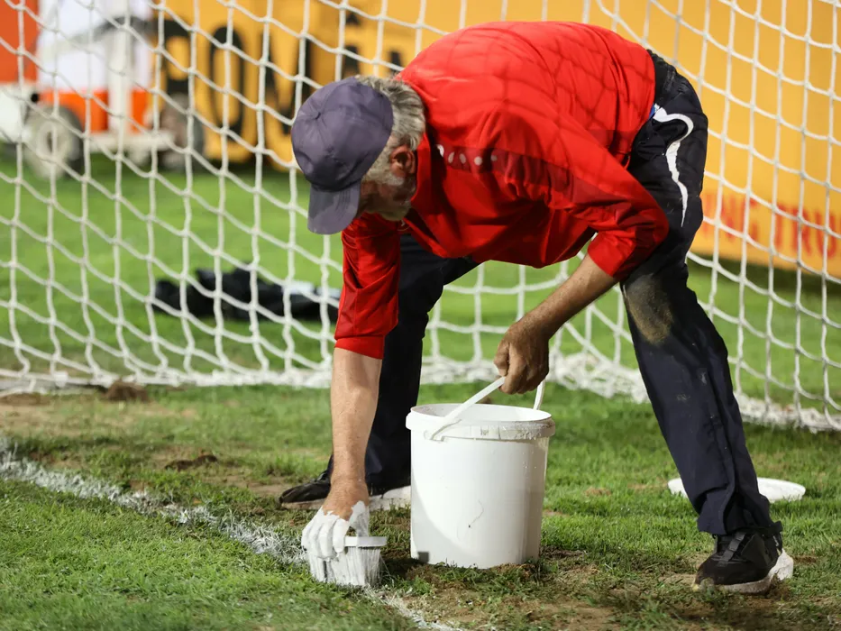 Trasarea liniei portii la meciul de fotbal dintre Otelul Galati si Sepsi OSK Sfantu Gheorghe, din cadrul Superligii Superbet, desfasurat pe Stadionul Otelul din Galati, vineri 30 august 2024. © FOTO:Sorin Pana/SPORT PICTURES