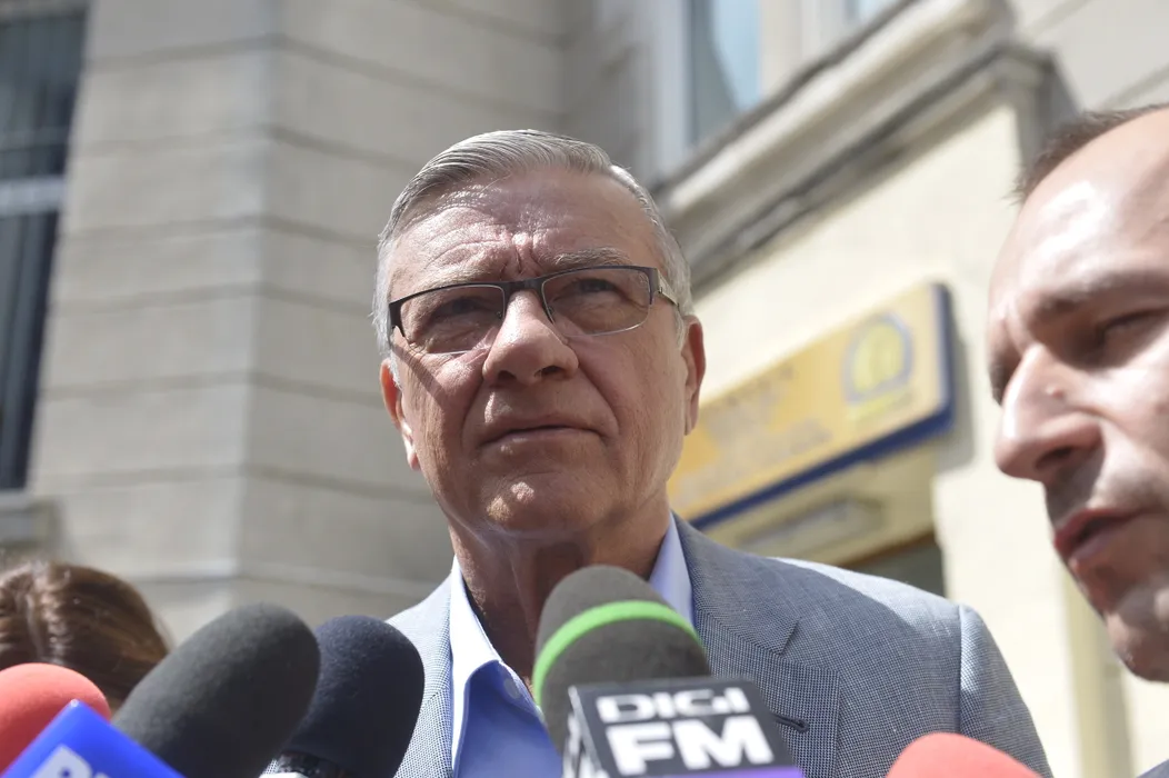 Fostul presedinte al FRF, Mircea Sandu sustine o declaratie de presa la iesirea din sediul Directiei Nationale Anticoruptie (DNA) din Bucuresti, dupa ce a fost audiat intr-un dosar nou cu acuzatii de luare de mita si spalare de bani, marti 20 iunie 2017. MARIAN ILIE / MEDIAFAX FOTO