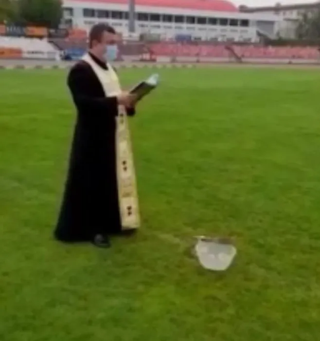 Așa speră să scape de retrogradare! Dinamoviștii au chemat preotul în „Ștefan cel Mare”. Slujbă religioasă pe teren și la vestiare | FOTO