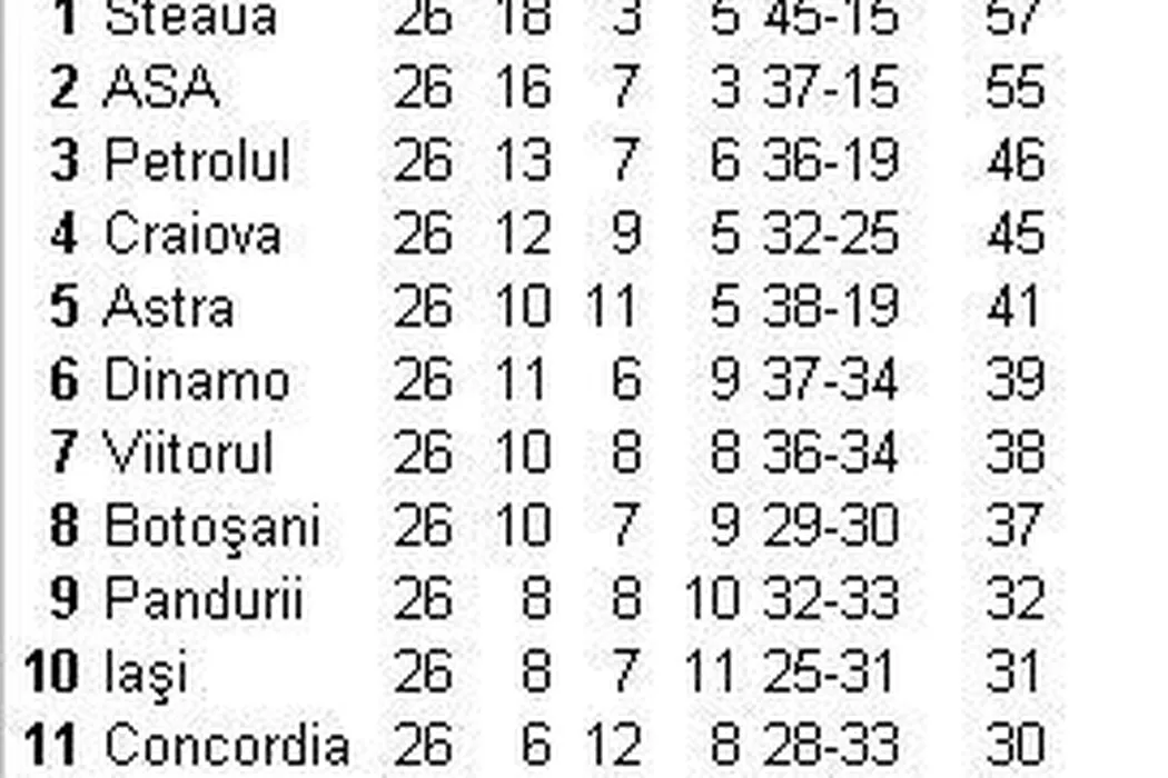 ASA Tg. Mureș conduce clar clasamentul primăverii. Steaua e pe 6, Viitorul – pe 3. Gaz Metan, Ceahlăul și Oțelul – pe locuri retrogradabile și în tur, și în retur