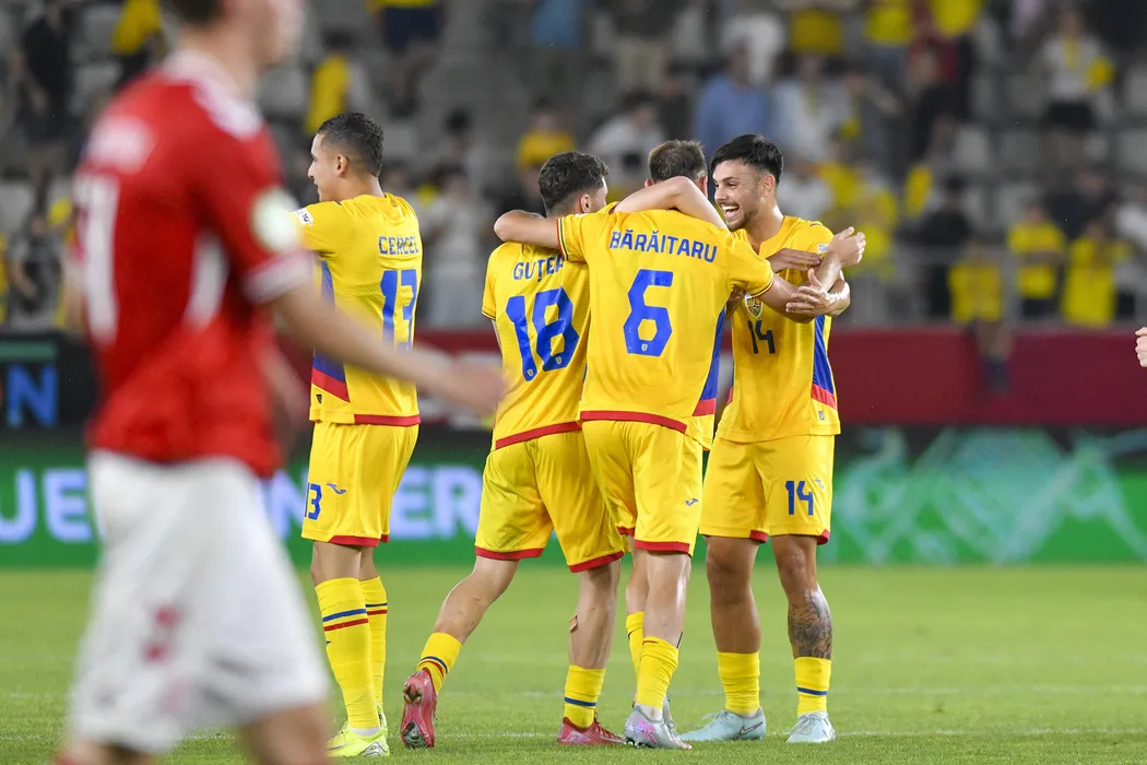 Romania U19 a invins Danemarca U19 cu scorul de 3-0 si s-a calificat in semifinalele EURO U19, intr-un meci disputat pe stadionul Arcul de Triumf din Bucuresti, joi, 19 iunie 2025. Au marcat: Remus Gutea ('34), David Barbu ('58) si Ioan Vermesan ('77). ALEXANDRU DOBRE / MEDIAFAX FOTO