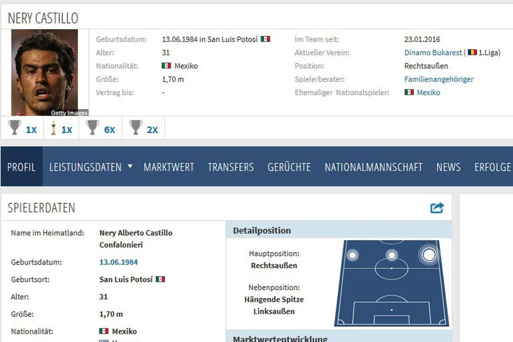 Asta ar fi fost bomba anului în Liga 1! FOTO Nery Castillo, trecut în lotul lui Dinamo pe Transfermarkt.de. Ce s-a întâmplat de fapt