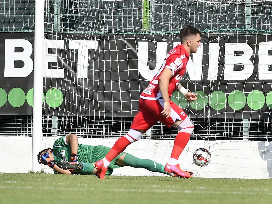 Deian Cristian Sorescu se bucura dupa un gol in poarta lui Octavian Gabriel Valceanu in meciul de fotbal dintre Academica Clinceni si Dinamo Bucuresti, contand pentru play-out-ul Ligii 1 Casa Pariurilor, disputat pe Clinceni Arena din Clinceni, duminica 5 iulie 2020. © FOTO:Razvan Pasarica/SPORT PICTURES