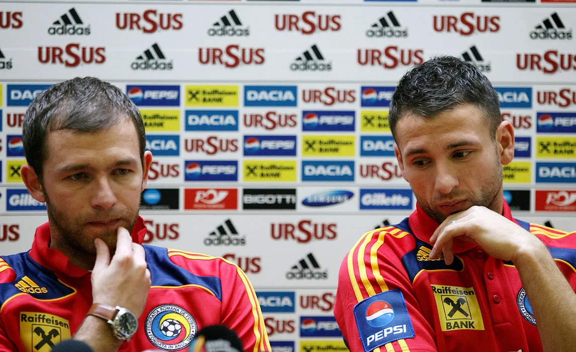Portarul Bogdan Lobont (S) si Razvan Rat participa la o conferinta de presa, la Centrul de Fotbal Mogosoaia, luni, 9 februarie 2009. CONSTANTIN VLADESCU / MEDIAFAX FOTO