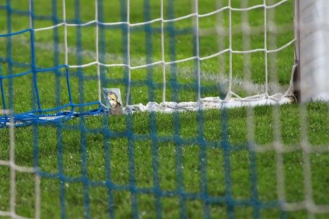 Asta e imaginea anului! :) Chipul lui Arsenie Boca a apărut în poarta lui Dinamo, la meciul cu Pandurii. FOTO GENIAL