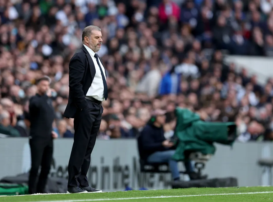 30 March 2024, United Kingdom, London: Tottenham Hotspur manager Ange Postecoglou stands on the touchline during the English Premier League soccer match between Tottenham Hotspur and Luton Town at the Tottenham Hotspur Stadium. Photo: Steven Paston/PA Wire/dpa