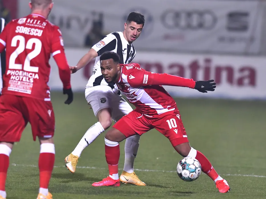 Valentin Gheorghe si Gevaro Giomar Magno Nepomuceno in meciul de fotbal dintre Astra Giurgiu si Dinamo Bucuresti, contand pentru Liga 1 Casa Pariurilor, desfasurat fara spectatori pe Stadionul Marin Anastasovici din Giurgiu, duminica 21 februarie 2021. © FOTO:Razvan Pasarica/SPORT PICTURES