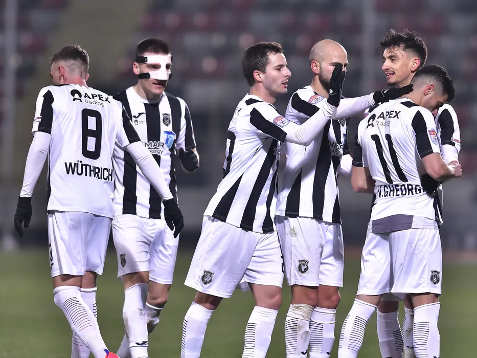 Bucurie a fotbalistilor de la Astra dupa un gol marcat cu Daniel Graovac, David Bruno Carneiro, Dario Canadija, Albert Tivadar Stahl si Valentin Gheorghe in meciul de fotbal dintre Astra Giurgiu si Dinamo Bucuresti, contand pentru Liga 1 Casa Pariurilor, desfasurat fara spectatori pe Stadionul Marin Anastasovici din Giurgiu, duminica 21 februarie 2021. © FOTO:Razvan Pasarica/SPORT PICTURES
