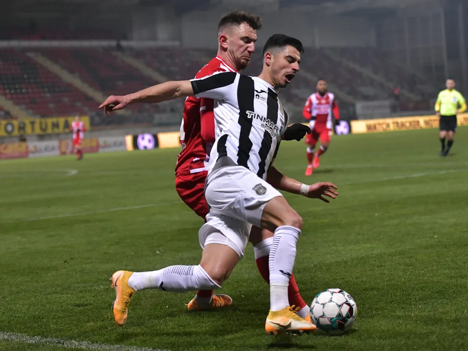 Deian Cristian Sorescu si Valentin Gheorghe in meciul de fotbal dintre Astra Giurgiu si Dinamo Bucuresti, contand pentru Liga 1 Casa Pariurilor, desfasurat fara spectatori pe Stadionul Marin Anastasovici din Giurgiu, duminica 21 februarie 2021. © FOTO:Razvan Pasarica/SPORT PICTURES