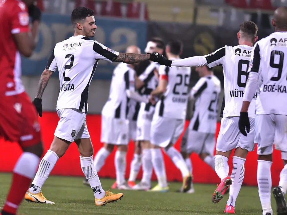 Hugo Filipe Goncalves Martins De Sousa se bucura dupa un gol marcat in meciul de fotbal dintre Astra Giurgiu si Dinamo Bucuresti, contand pentru Liga 1 Casa Pariurilor, desfasurat fara spectatori pe Stadionul Marin Anastasovici din Giurgiu, duminica 21 februarie 2021. © FOTO:Razvan Pasarica/SPORT PICTURES