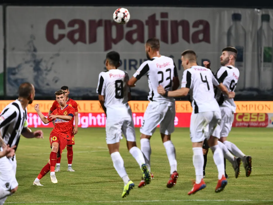 Florin Tanase executa o lovitura libera in meciul de fotbal dintre Astra Giurgiu si FCSB, contand pentru play-off-ul Ligii 1 Casa Pariurilor, disputat fara spectatori pe Stadionul Marin Anastasovici din Giurgiu, luni 29 iunie 2020. © FOTO:Razvan Pasarica/SPORT PICTURES