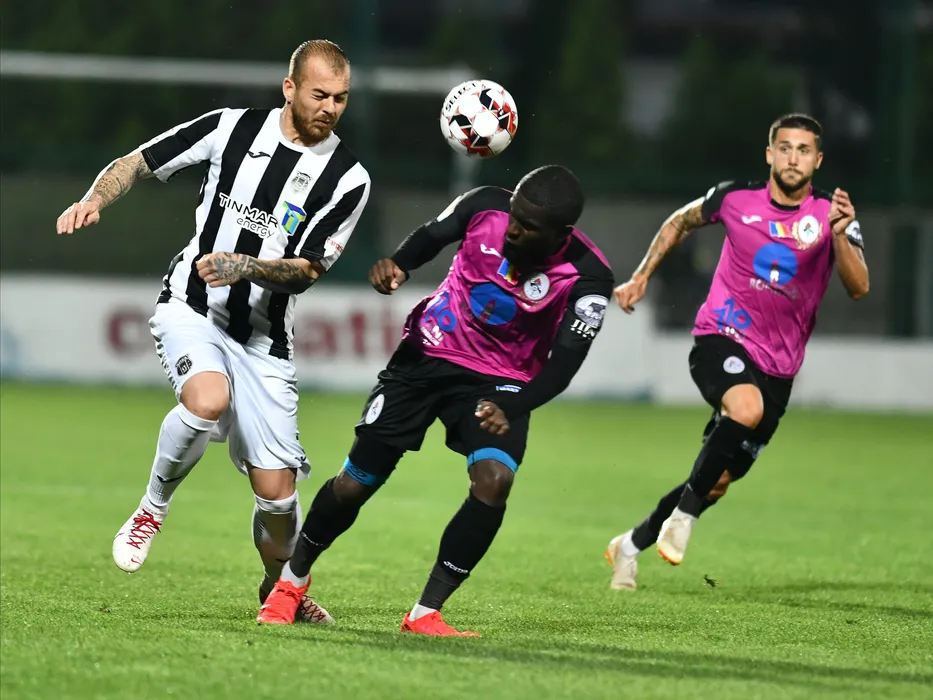 Denis Alibec si Nasser Chamed in meciul de fotbal dintre Astra Giurgiu si Gaz Metan Medias, contand pentru play-off-ul Ligii 1 Casa Pariurilor, disputat fara spectatori pe Stadionul Marin Anastasovici din Giurgiu, luni 15 iunie 2020. © FOTO:Razvan Pasarica/SPORT PICTURES