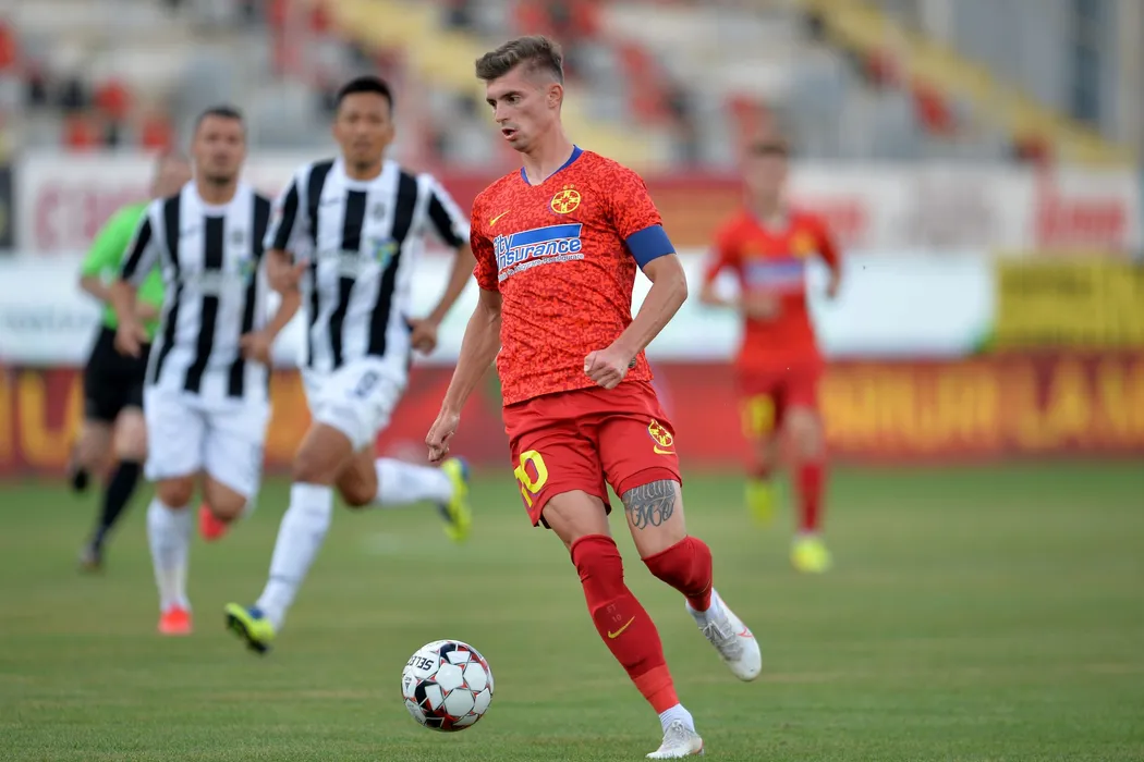 Florin Tanase, de la FCSB, suteaza in timpul meciului de fotbal contra echipei AFC Astra Giurgiu din etapa a V-a a play-off-ului Ligii 1, disputat pe stadionul stadionul Marin Anastasovici din Giurgiu, luni, 29 iunie 2020. ALEXANDRU DOBRE / MEDIAFAX FOTO