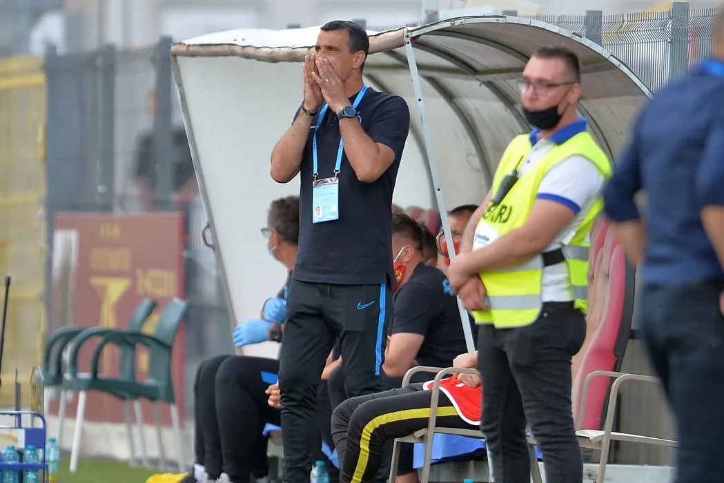 Bogdan Vintila, antrenorul echipei FCSB, urmareste meciul de fotbal contra echipei AFC Astra Giurgiu din etapa a V-a a play-off-ului Ligii 1, disputat pe stadionul stadionul Marin Anastasovici din Giurgiu, luni, 29 iunie 2020. ALEXANDRU DOBRE / MEDIAFAX FOTO