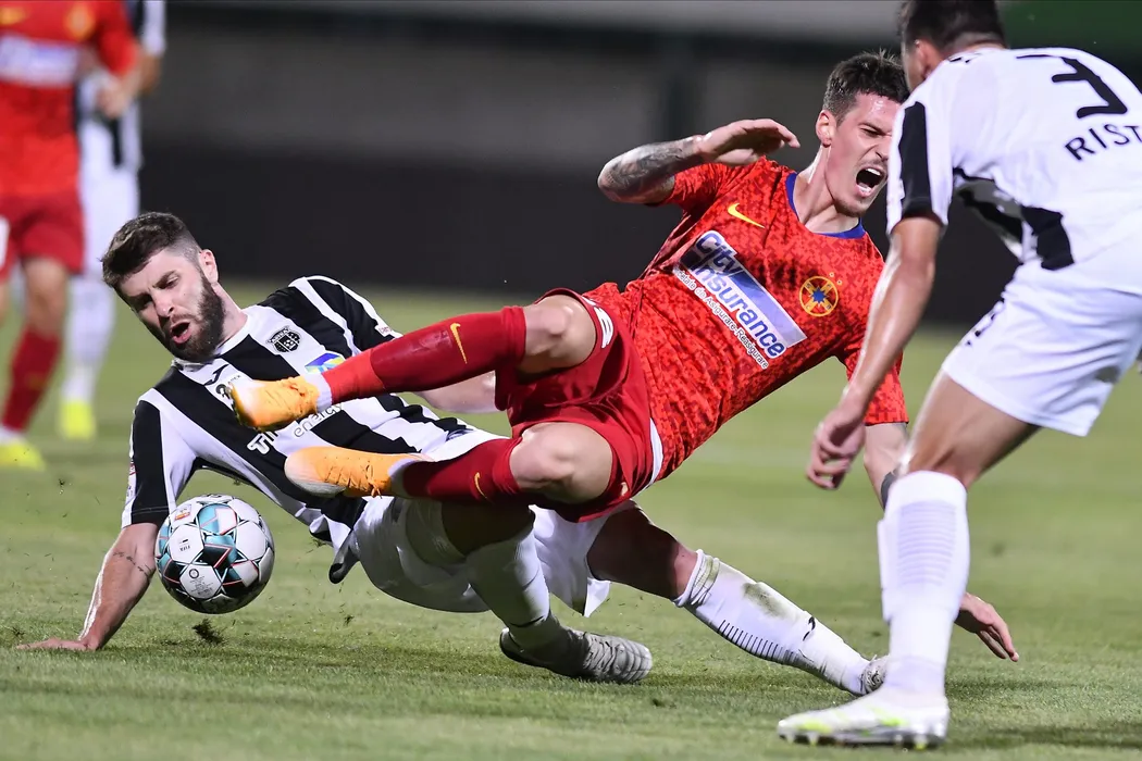Mihai Cosmin Radut si Dennis Man in meciul de fotbal dintre Astra Giurgiu si FCSB, contand pentru Liga 1 Casa Pariurilor, desfasurat pe Stadionul Marin Anastasovici din Giurgiu, sambata 22 august 2020. © FOTO:Razvan Pasarica/SPORT PICTURES