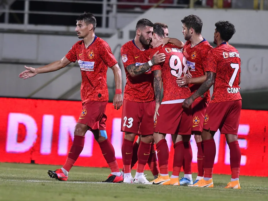 Bucurie stelista cu Iulian Lucian Cristea, Ovidiu Marian Popescu, Dennis Man si Sergiu Florin Bus in meciul de fotbal dintre Astra Giurgiu si FCSB, contand pentru Liga 1 Casa Pariurilor, desfasurat pe Stadionul Marin Anastasovici din Giurgiu, sambata 22 august 2020. © FOTO:Razvan Pasarica/SPORT PICTURES