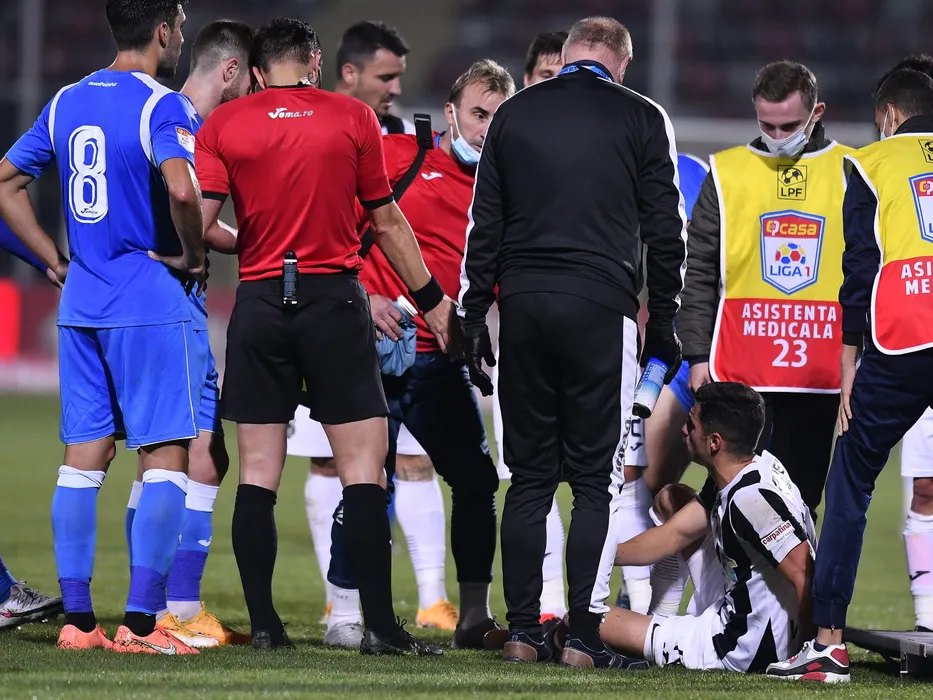 Accidentare a unui jucator al Astrei in meciul de fotbal dintre Astra Giurgiu si CSM Politehnica Iasi, contand pentru Liga 1 Casa Pariurilor, desfasurat fara spectatori pe Stadionul Marin Anastasovici din Giurgiu, sambata 24 octombrie 2020. © FOTO:Razvan Pasarica/SPORT PICTURES