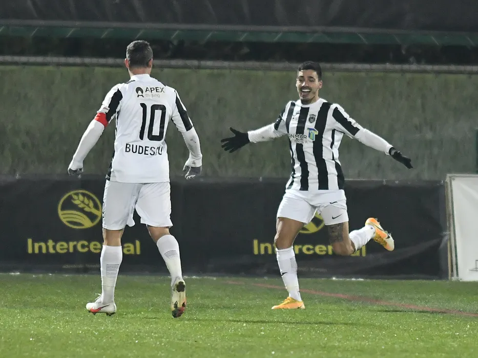 Hugo Filipe Goncalves Martins De Sousa se bucura dupa un gol marcat in meciul de fotbal dintre Astra Giurgiu si Universitatea Craiova, contand pentru Liga 1 Casa Pariurilor, desfasurat fara spectatori pe Stadionul Marin Anastasovici din Giurgiu, luni 18 ianuaie 2021. © FOTO:Razvan Pasarica/SPORT PICTURES