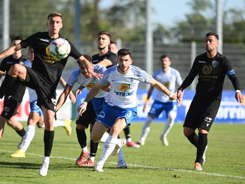 Jeremy Jimmy Theophile Corinus, Mihai Popescu si Cosmin Neagu in meciul de fotbal dintre CSM Alexandria si Farul Constanta, contand pentru Cupa Romaniei, desfasurat pe Stadionul Municipal din Turnu Magurele, marti 18 octombrie 2022. © FOTO:Razvan Pasarica/SPORT PICTURES